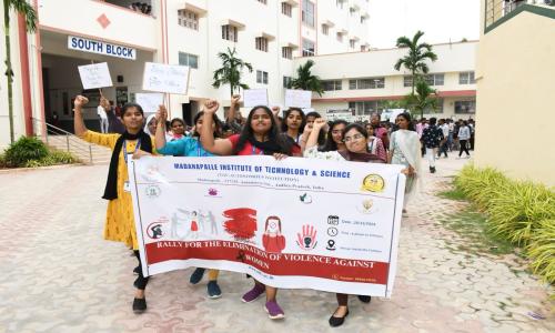 నమిత న్యూస్ - Andhra Pradesh / Annamayya : మదనపల్లె - నవంబర్ 25 : మదనపల్లె ఇన్స్టిట్యూట్ ఆఫ్ టెక్నాలజీ & సైన్స్, మదనపల్లె నందు మహిళలపై హింస నిర్మూలన కోసం ర్యాలీ ని నిర్వహించారు. కళాశాల లోని మిట్స్ సోషల్ రెస్పాన్సిబుల్ క్లబ్ వారు కళాశాల ప్రాంగణం లో ఈ ర్యాలీ ని నిర్వహించారు. కార్యక్రమం లో కళాశాల ప్రిన్సిపాల్ డాక్టర్ సి. యువరాజ్ మాట్లాడుతూ ప్రస్తుతం మనం టెక్నాలజీ పరంగా గాని, ఆర్థికంగా గాని, అభివృద్ధిలో గాని, ఇతర అంశాలలో మనం ఎంతో పురోగతి సాధించామని, కానీ మహిళలపై హింసాత్మక చర్యలు రకరకాలుగా ఇప్పటికీ చూస్తూనేఉన్నాం అని అన్నారు. మహిళలపై హింస నిర్మూలన దినోత్సవం సందర్భంగా ఏర్పాటుచేసిన ర్యాలీని ఆయన ప్రారంభించారు. పని ప్రదేశాల్లో మహిళలపై లైంగిక హింస, సైబర్ నేరాలు, మానసికంగా వేధించడం వంటి అంశాలతో పాటు మహిళల ఆర్థిక పురోభివృద్ధి, సాధికారత, ఆరోగ్యం, పౌష్టికాహారం తదితరాలపై అవగాహన కల్పించడం ఈ ర్యాలీ యెక్క ముఖ్య ఉదేశ్యం అని అన్నారు. కార్యకమం లో విద్యార్థులు, క్లబ్ కో ఆర్డినేటర్ షాయీజ్ అహమ్మద్, సాక్ కో ఆర్డినేటర్ డాక్టర్ జి. రెడ్డి హేమంతా తదితరులు పాల్గొన్నారు.