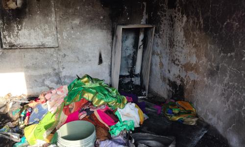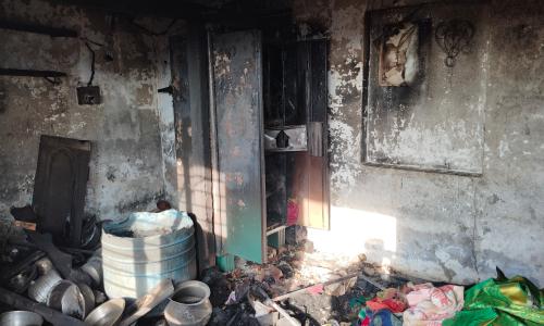 నమిత న్యూస్ - Andhra Pradesh / AMARAVATHI : మదనపల్లె - మే15 : మదనపల్లె పట్టణం సమీపంలోని కోళ్లబైళ్ళు గ్రామం బాబు కాలనీ లో బుధవారం రాత్రి ఉరుములు , మెరుపులు వచ్చిన సమయంలో ఇంట్లో విద్యుత్ షార్ట్ సర్క్యూట్ అయి మంటలు చెలరేగి ఇంట్లోని బట్టలు , విద్యుత్ ఉపకరణాలు , విలువైన సామగ్రి దగ్ధం అయిపోయాయని వాపోతున్న లక్ష్మీ దేవమ్మ , శ్రీనివాసులు దంపతులు. ఇంట్లో మంటలు చెలరేగిన సమయంలో తాను ఒక్కటే ఉండటంతో భయం తో బయటకు వచ్చేయడం తో పెనుప్రమాదం తప్పిందని , విలువైన సామగ్రి , విద్యుత్ ఉపకరణాలు దగ్ధం మవడంతో సుమారుగా నాలుగు లక్షలు రూ నష్టం వాటిల్లినట్లు బాధితురాలు లక్ష్మీదేవమ్మ తెలిపారు . తాము కూలీ పనులు చేసుకొని జీవనం వెళ్లదీస్తున్న కుటుంబమని మమ్మల్ని ప్రభుత్వం ఆదుకోవాలని విలపిస్తున్న లక్ష్మీదేవమ్మ