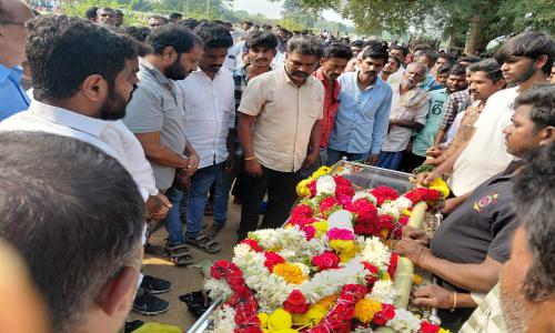 నమిత న్యూస్ - Andhra Pradesh / Annamayya : మదనపల్లి - మార్చి 22 : మదనపల్లి మండలం పోతబోలు పంచాయతీ కొయ్యలవారిపల్లి కి చెందిన నారాయణ కుమారుడు భద్రాచలం వద్ద మూడు రోజుల క్రితం గోదావరి నది లో స్నానం కు వెళ్లి గల్లంతు అయి మృతి చెందిన విద్యార్థులలో ఒకరైన సతీష్ కుమార్ మృతదేహం స్వగ్రామం కు చేరుకోవడం తో గ్రామం లో విషాదచాయలు, విద్యార్థిని పార్థివ దేహానికి పూలమాలవేసి శ్రద్ధాంజలి ఘటించి, వారి కుటుంబ సభ్యులను ఓదార్చి మీకు అండగా ఉంటామని భరోసా కల్పించిన ఎమ్మెల్యే షాజహాన్ భాష ఎమ్మెల్యే తో పాటు స్థానిక తెలుగుదేశం పార్టీ నాయకులు, కార్యకర్తలు పాల్గొన్నారు