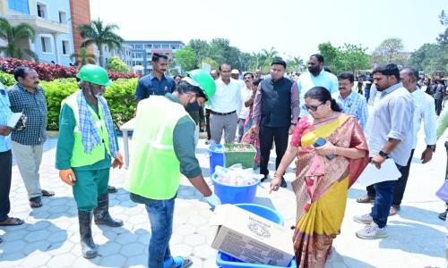 శనివారం మదనపల్లి పట్టణంలోని పుంగనూరు రోడ్డులో ఉన్న ఆదిత్య ఇంజినీరింగ్ కాలేజీలో నిర్వహించిన స్వచ్ఛ ఆంధ్ర–స్వర్ణాంధ్ర కార్యక్రమంలో కలెక్టర్ పాల్గొన్నారు. ఈ సందర్భంగా ఆయన మాట్లాడుతూ రాష్ట్ర ప్రభుత్వం ప్రతినెలా నిర్వహిస్తున్న స్వచ్ఛ ఆంధ్ర కార్యక్రమం ద్వారా శుభ్రమైన సమాజ నిర్మాణమే లక్ష్యమని తెలిపారు. ఈ నెలకు “జీరో వేస్ట్ ఇన్స్టిట్యూషన్స్” అనే అంశాన్ని ప్రభుత్వం నిర్ణయించిందని, దానికి అనుగుణంగా విద్యాసంస్థలు ప్రత్యేక చర్యలు చేపట్టాలని సూచించారు. పాఠశాలలు, కళాశాలలు, కార్యాలయాల్లో వ్యర్థాల ఉత్పత్తి ఎక్కువగా ఉంటుందని, వాటిని సరైన విధంగా వేరు చేసి నిర్వహించకపోతే పర్యావరణానికి హాని కలుగుతుందని చెప్పారు. తడి చెత్త, పొడి చెత్త, ప్లాస్టిక్, ఎలక్ట్రానిక్, హానికర వ్యర్థాలను వేర్వేరు చేయడం తప్పనిసరి అని పేర్కొన్నారు. ఇంజినీరింగ్ కాలేజీలలో ఎలక్ట్రానిక్ వ్యర్థాలు, ప్లాస్టిక్ బాటిల్స్, క్యాంటీన్ వ్యర్థాలు ఎక్కువగా ఉత్పత్తి అవుతాయని, ప్రతి సంస్థ తమకు సంబంధించిన వ్యర్థాల నిర్వహణకు ప్రత్యేక ప్రణాళిక రూపొందించుకోవాలని సూచించారు. గ్రామ పంచాయతీల్లో స్వచ్ఛ రథాల ద్వారా ప్లాస్టిక్, ఎలక్ట్రానిక్ వ్యర్థాలను సేకరించి, వాటికి బదులుగా నగదు లేదా వస్తువులు అందించే విధానం అమల్లో ఉందని తెలిపారు. ప్రజలు ఈ సేవలను వినియోగించుకోవాలని కోరారు. పర్యాటక ప్రదేశాలు, అడవుల్లో చెత్త పారవేయడం వల్ల కాలుష్యం పెరుగుతోందని, ప్రతి ఒక్కరూ తమ బాధ్యతగా శుభ్రతను పాటించాలని సూచించారు. శుభ్రత ఒక రోజు కార్యక్రమం కాకుండా రోజువారీ అలవాటుగా మార్చుకోవాలని అన్నారు. విద్యార్థులు ఈ శుభ్రత సందేశాన్ని తమ కుటుంబాలకు, సమాజానికి తీసుకెళ్లి ప్రతి ఇంటిని కూడా జీరో వేస్ట్ కేంద్రంగా మార్చేందుకు కృషి చేయాలని కలెక్టర్ పిలుపునిచ్చారు