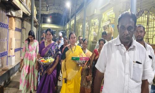 నమిత న్యూస్ - Andhra Pradesh / Annamayya : రాయచోటి, అక్టోబర్ 11: దసరా ఉత్సవాల సందర్భంగా రాష్ట్ర రవాణా, యువజన క్రీడ శాఖ మంత్రి మండిపల్లి రాంప్రసాద్ రెడ్డి గారి సతీమణి శ్రీమతి హరితమ్మ గారు శుక్రవారం సాయంత్రం రాయచోటి పట్టణంలోని శ్రీ వీరభద్ర స్వామి గుడిలో ప్రత్యేక పూజలు నిర్వహించారు. ఈ సందర్భంగా హరితమ్మ గారికి ఆలయ పూజారులు భక్తిశ్రద్ధలతో ప్రత్యేక పూజలు నిర్వహించారు. అనంతరం వేదాశ్వీర్వచనం చేసి హరితమ్మ గారికి తీర్థ ప్రసాదాలు అందజేశారు.