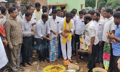 నమిత న్యూస్ - Andhra Pradesh / Annamayya : రామసముద్రం -అక్టోబర్19 : కూటమి ప్రభుత్వం గ్రామాలను అభివృద్ధి బాటలో తీసుకువెళ్లేందుకు చేస్తున్న యజ్ఞం మే ఈ పల్లెపండుగ కార్యక్రమం . గ్రామసభ లలో అందరి ఆమోదం తో నిర్ణయించిన అభివృద్ధి పనులకు నేడు పూజ కార్యక్రమం నిర్వహించి పనులను ప్రారంభిస్తున్నామని వెల్లడించిన ఎమ్మెల్యే షాజహాన్ బాష నేడు ఆర్. నడింపల్లి గ్రామ పంచాయతీ లోని ఎగువ బొంపల్లి లో సి సి.రోడ్డు కు భూమి పూజ చేసిన ఎమ్మెల్యే షాజహాన్ బాష . ఈ కార్యక్రమంలో అధికారులు , స్థానిక కూటమి నేతలు పాల్గొన్నారు .