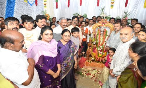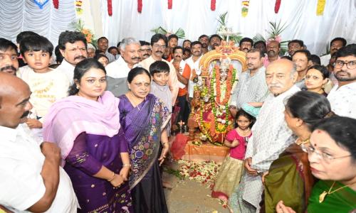 నమిత న్యూస్ - Andhra Pradesh / చిత్తూరు : పుంగనూరు - మార్చి 25 : పుంగనూరు పట్టణంలో అత్యంత వైభవోపేతంగా జరుగుతున్న శ్రీ సుగుటూరు గంగమ్మ జాతర సందర్భంగా మాజీ మంత్రి పెద్దిరెడ్డి రామచంద్రారెడ్డి కుటుంబ సమేతంగా వచ్చి అమ్మవారికి పట్టు వస్త్రాలు , బంగారు ఆభరణాలు బహుకరించి ప్రత్యేక పూజలు చేసిన పెద్దిరెడ్డి కుటుంబ సబ్యులు . ఈ కార్యక్రమంలో మాజీ మంత్రి పెద్దిరెడ్డి రామచంద్రారెడ్డి దంపతులు , తంబల్లపల్లి ఎమ్మెల్యే ద్వారకనాథ్ రెడ్డి , మాజీ ఎంపీ రెడ్డెప్ప , పెద్దిరెడ్డి సుధీర్ రెడ్డి స్థానిక వైఎస్ఆర్సీపీ నేతలు పాల్గొన్నారు .