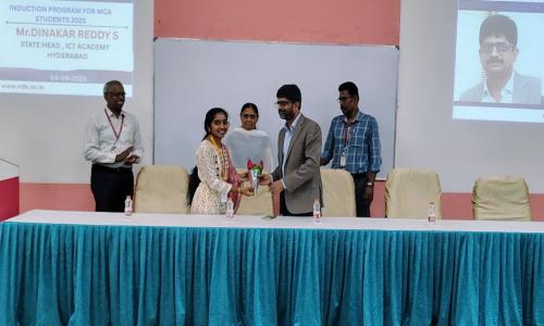 నమిత న్యూస్ - Andhra Pradesh / Annamayya : మదనపల్లె - సెప్టెంబర్ 04 : అంగళ్లు సమీపం లో ఉన్న మిట్స్ డీమ్డ్ టు బి యూనివర్సిటీ నందు ఏం.సి.ఏ మరియు ఏం.బి.ఏ విద్యార్థులకు నిర్వహించిన ఇండక్షన్ ప్రోగ్రాం కు హైదరాబాద్లోని ఐ సి టి (ICT) అకాడమీ రాష్ట్ర అధిపతి డాక్టర్ దినకర్ రెడ్డి, ముఖ్య అతిథిగా పాల్గొన్నారు. ఆయన యూనివర్సిటీ నందు కొత్తగా చేరిన ఏం.సి.ఏ విద్యార్థులను ఉద్దేశించి ప్రసంగించారు. కంప్యూటర్ అప్లికేషన్ల రంగంలో విజయవంతమైన కెరీర్లను నిర్మించడానికి నిరంతర అభ్యాసం, అనుకూలత మరియు పరిశ్రమ-ఆధారిత నైపుణ్యాల ప్రాముఖ్యతను ఆయన తన ప్రసంగంలో చెప్పారు. వృత్తిపరమైన ప్రయాణాన్ని రూపొందించడానికి కొత్త సాంకేతికతలను మరియు సంస్థ అందించిన వనరులను ఉపయోగించుకోవాలని ఆయన అన్నారు. విద్యార్థులు ప్రస్తుతం వున్న టెక్నాలజీ రంగం లో జరుగుతున్న మార్పులను రోజు రోజు తెలుసుకోవాలని ఆయన అన్నారు. విద్యార్థులు, తాజా ఇన్ఫర్మేషన్ టెక్నాలజీ (IT) ధోరణులలో తమ నైపుణ్యాలను పెంచుకోవడానికి మరియు సాంకేతికత వేగంగా అభివృద్ధి చెందుతున్నందున, ఇంజనీరింగ్ మరియు నిర్వహణ గ్రాడ్యుయేట్లకు ఆధునిక సాధనాలు, ప్లాట్ఫారమ్లు మరియు అభ్యాసాలకు గురికావడం చాలా అవసరం. ప్రత్యేక శిక్షణా కార్యక్రమాలు, వర్క్షాప్లు మరియు పరిశ్రమ సహకారం ద్వారా, విద్యార్థులు ఆర్టిఫిషియల్ ఇంటెలిజెన్స్, క్లౌడ్ కంప్యూటింగ్, డేటా సైన్స్, సైబర్ సెక్యూరిటీ మరియు ఎమర్జింగ్ ఐటీ అప్లికేషన్స్ వంటి రంగాలలో ద్రుష్టి సారించి కెరీర్ డెవలప్మెంట్ పై ద్రుష్టి పెట్టాలని ఆయన అన్నారు. ప్రస్తుతం ఐటి రంగం లో ఉద్యోగ అవకాశాలు మెరుగుగా ఉన్నాయని, విద్యార్థులు క్యాంపస్ కు వచ్చే కంపెనీ లోనే ఉద్యోగం తెచ్చుకోవాలని, బయట ప్రపంచం లో పోటీ చాలా ఉందని ఆయన అన్నారు. కార్యకమం లో ఏం.సి.ఏ విభాగాధిపతి డాక్టర్ నవీన్ కుమార్, అధ్యాపకులు మరియు విద్యార్థులు పాల్గొన్నారు.