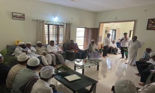 నమిత న్యూస్ - Andhra Pradesh / Annamayya : పవిత్ర శుక్రవారం మదనపల్లె నియోజకవర్గం నిమ్మనపల్లె మండలం కొండయ్యగారిపల్లి మదీనా మసీదులో ప్రత్యేక ప్రార్థనలలో పాల్గొన్న మదనపల్లె వైసిపి సమన్వయకర్త నిస్సార్ అహమ్మద్..... స్దానిక వైసిపి నాయకులు, మత పెద్దల ఆహ్వానం మేరకు మదనపల్లె నియోజకవర్గం నిమ్మనపల్లె మండలం కొండయ్యగారిపల్లి మదీనా మసీదులో నిర్వహించిన ప్రత్యేక ప్రార్థనలలో మదనపల్లె వైసిపి సమన్వయకర్త నిస్సార్ అహమ్మద్ పాల్గొన్నారు. ఈ సందర్భంగా వైసిపి నాయకులు, స్దానికులు నిస్సార్ అహమ్మద్ కు స్వాగతం పలికారు. ఈ సందర్భంగా ముస్లింలతో కలిసి ప్రత్యేక ప్రార్థనలలో పాల్గొన్నారు. అనంతరం మత పెద్దలతో చర్చించారు. ప్రార్థనలలో పాల్గొన్న వారందరితో ప్రత్యేకంగా పలకరించి, యోగక్షేమాలు తెలుసుకున్నారు. స్దానిక ప్రజలతో మాట్లాడి సమస్యలు తెలుసుకున్నారు. ఈ కార్యక్రమంలో నిస్సార్ అహమ్మద్ తోపాటు రెడ్డిశేఖర్ రెడ్డి, శశిధర్ రెడ్డి, అబ్దుల్లా సాబ్, ఖాదర్ సాబ్, హసన్ సాబ్, మౌలా, చాపల సయ్యద్ ఖాన్, లతీఫ్, అబ్దుల్ రౌఫ్, ముబారక్, ఇనాయత్ సాబ్, నూర్ మొహిద్దీన్, మక్రుద్దీన్, ఫక్రుద్దీన్, ఫక్రుద్దీన్, ఫక్రుద్దీన్, ఫక్రుద్దీన్, సాదిక్, యాసీన్, జబివుల్లా, తాజ్, హబీబ్, జైనుద్దీన్, సత్తార్ భాయ్ నాసిర్, మసీదు కమిటీ సభ్యులు పాల్గొన్నారు.
