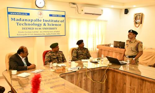 నమిత న్యూస్ - Andhra Pradesh / Annamayya : మదనపల్లె - అక్టోబర్ 30 : అంగళ్ళు సమీపం లోని మిట్స్ డీమ్డ్ టూ బీ యూనివర్సిటీ కు యెన్.సి.సి లెఫ్టినెంట్ కల్నల్ హెచ్. లలిత్ బాబు, అడ్మిన్ ఆఫీసర్ 30 ఆంధ్ర బెటాలియన్, కడప, లెఫ్టినెంట్ కల్నల్ పి. లోగనాథన్ మరియు నాయక్ సుభేదర్-వేత్రయాన్.వి, 35 ఆంధ్ర బెటాలియన్, చిత్తూర్ వారి తో ఇంటరాక్షన్ సెషన్ ను నిర్వహించినట్లు యూనివర్సిటీ ఉపకులపతి డాక్టర్. సి. యువరాజ్ అన్నారు. కార్యక్రమంలో యెన్.సి.సి విద్యార్థుల ట్రైనింగ్ సదుపాయాలు, ప్యారేడ్ గ్రౌండ్, శిక్షణ పరికరాలు, కేడెట్లకు అందుబాటులో ఉన్న మౌలిక వసతులు ను సందర్శించారు. కార్యక్రమంలో లెఫ్టినెంట్ కల్నల్ హెచ్.లలిత్ బాబు మాట్లాడుతూ ప్రపంచంలోనే అతిపెద్ద యూనీఫాం యువజన దళంగా ఎన్సీసీ ప్రసిద్ధి పొందింది అని, రేపటి పౌరుల్లో క్రమశిక్షణ, సేవాభావం, దేశభక్తి, నాయకత్వ లక్షణాలు పెంపొందించడంలో ఎన్సీసీ ఎంతో ప్రసిద్ధి చెందిందని అన్నారు. ఆధునిక విద్యా వ్యవస్థలో ప్రతి విద్యార్ధి కి ఎన్సీసీ చోటు కల్పించాల్సిన అవసరం ఎంతో ఉందని, ఎన్సీసీ క్యాడెట్ వారానికి కనీసం నాలుగు గంటల సమయాన్ని కేటాయించాల్సి ఉంటుంది అని అన్నారు. ఎన్సీసీలో శిక్షణ అనంతరం అందించే ఏ, బీ, సీ సర్టిఫికెట్లు విద్యార్థుల ఉన్నత విద్య, ఉద్యోగాలకు ఎంతో ఉపయోగపడుతున్నాయి అని అన్నారు. ప్రభుత్వ ఉద్యోగాలకు యెన్.సి.సి సెరిటిఫికేట్ కు ప్రత్యేక కోటా ఉంటుందని అన్నారు. సీ సర్టిఫికెట్ పొందిన అభ్యర్థులకు ప్రత్యేక డ్రైవ్ ద్వారా ఆర్మీలో అవకాశం కల్పిస్తారు అని, ఎన్సీసీ ఏ, బీ, సీ సర్టిఫికెట్లు కలిగిన వారికి పోలీస్ నియామక పరీక్షల్లో అదనంగా మార్కులు కేటాయిస్తారు అని అన్నారు. వివిధ ప్రభుత్వ, ప్రైవేట్ సంస్థలు, నిఘా, భద్రత, సెక్యూరిటీ ఉద్యోగాల్లో వీరికి ప్రాధాన్యం లభిస్తుంది అని అన్నారు. క్యాడెట్స్ వీటిపై అవగాహాన పెంచుకోవాలని ఆయన అన్నారు. కార్యకమం లో యెన్.సి.సి లెఫ్టనెంట్ డాక్టర్ నవీన్ కుమార్ మరియు యెన్.సి.సి విద్యార్థులు పాల్గొన్నారు.