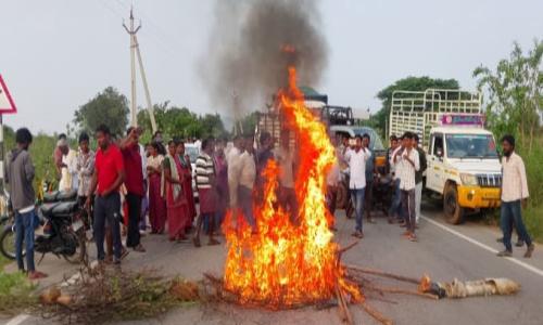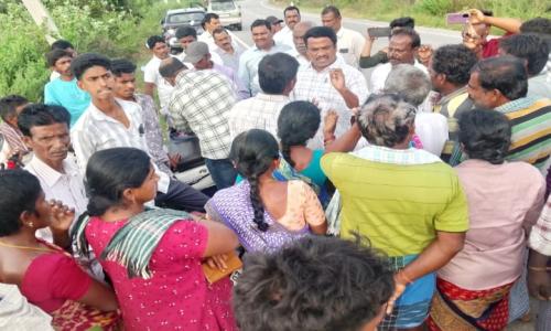 నమిత న్యూస్ - Andhra Pradesh / Annamayya : తంబళ్లపల్లె - నవంబర్ 10 ః తంబళ్లపల్లె మండలం రెడ్డికోట వద్ద ప్రభుత్వ ఏపీఐఐసి గుర్తించిన భూముల్లో ఇండస్ట్రియల్ పార్క్ నిర్మాణానికి సోమవారం శంకుస్థాపనకు అధికారులు తరలి వెళ్లారు. విషయం తెలుసుకున్న రైతులు తమ భూములను లాక్కుంటున్నారని కడప-మదనపల్లి హైవే రోడ్డుపై అడ్డంగా బైఠాయించి రెవెన్యూ అధికారులకు వ్యతిరేకంగా నిరసన వ్యక్తం చేశారు. ఈ సందర్భంగా సుమారు గంటన్నర పాటు ట్రాఫిక్ స్తంభించి వందలాది వాహనాలు నిలిచిపోవడంతో ప్రయాణికులు తీవ్ర ఇబ్బందులు ఎదుర్కొన్నారు. తంబళ్లపల్లి మండలం రెడ్డికోట ప్రధాన హైవే పక్కన ప్రభుత్వం ఇండస్ట్రియల్ పార్కు నిర్మాణానికి స్థానిక రెవిన్యూ అధికారులు ఏపీఐఐసీ అధికారులకు సర్వే నెంబర్లు 906, 907,908లో 20.981 ఎకరాల ప్రభుత్వ భూమి గా గుర్తించి కేటాయించారు. గత నెల రోజుల క్రితమే ఈ ఏపీఐఐసీ ఇండస్ట్రియల్ పార్క్ కేటాయించిన భూములలో రెవెన్యూ అధికారులు సర్వే నిర్వహించారు. అప్పట్లోనే ఆ భూములు సాగు చేసుకుంటున్న వెనుకబడిన, దళిత రైతులు అధికారులను నిలదీయగా అధికారులు రికార్డులలో ఈ భూమి మీ పేర్లతో లేదని తేల్చి చెప్పడంతో వారు అప్పట్లోనే ఆందోళనకు దిగారు. రైతులు తాము గత 50 ఏళ్లుగా ఈ భూములు సాగు చేసుకుంటున్నామని ఈ భూములే మాకు జీవనాధారం అని ఈ భూములు కోల్పోతే మాకు ఆత్మహత్య శరణ్యమని తేల్చి చెప్పారు. ఈ విషయమై బాధిత రైతులు ఉన్నతాధికారులకు ఫిర్యాదులు సైతం చేశారు. అయితే సోమవారం ఏపీఐఐసీ అధికారులతో బాటు తాసిల్దార్ శ్రీనివాసులు, రెవెన్యూ సిబ్బంది, మండల డిప్యూటీ ఎంపీడీవో ప్రసాద్, ఏవో థామస్ రాజా, ఐకెపి ఎపిఎం గంగాధర్ అధికారులు భూముల వద్దకు చేరుకున్నారు. బాధిత రైతులు హైవే రోడ్డుపైనే అధికారులతో వాగ్వివాదానికి దిగి రోడ్డుకు అడ్డంగా తమ ద్విచక్ర వాహనాలు ఉంచి బైటాయించి ఆందోళనకు దిగడంతో అక్కడ ఉద్రిక్త వాతావరణం ఏర్పడింది. ఈ సందర్భంగా కొందరు యువకులు పెట్రోల్ పోసుకొని అంటించుకోవడానికి ప్రయత్నించగా ప్రజలు అడ్డుకొని లాక్కున్నారు. తమకు దశాబ్దాలుగా జీవనాధారమైన భూములకు రికార్డులు లేవని రెవిన్యూ అధికారులు చెప్పడం పై ఆగ్రహం వ్యక్తం చేశారు. రెవెన్యూ అధికారులకు వ్యతిరేకంగా నినాదాలు చేశారు. సుమారు గంటకు పైగా హైవే పై రైతుల ఆందోళన తో వందలాది వాహనాలు నిలిచిపోయి ట్రాఫిక్ స్తంభించిపోయింది. విషయం తెలుసుకున్న తంబళ్లపల్లె ఏఎస్ఐ నజీర్ భాష హుటాహుటిన తన సిబ్బందితో రైతులు ఆందోళన వద్దకు చేరుకొని రైతులు, అధికారులతో మాట్లాడి సమస్య పరిష్కారానికి అధికారులు సహకరిస్తారని ఒప్పించి నిరసన కార్యక్రమాన్ని శాంతింప చేశారు. సమస్య సద్దుమనగడంతో ట్రాఫిక్ లో ఇరుక్కుపోయిన వాహన చోదకులు, అధికారులతో పాటు పోలీసులు ఊపిరి పీల్చు కున్న