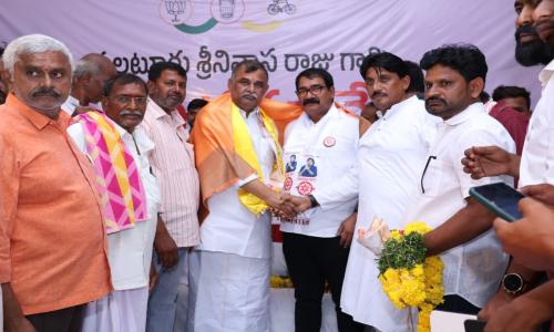 నమిత న్యూస్ - Andhra Pradesh / AMARAVATHI : రాజంపేట లో జనసేన పార్టీ యల్లటూరి శ్రీనివాస రాజు ఆధ్వర్యంలో పార్టీ శ్రేణులతో ఆత్మీయ సమావేశం! రాయచోటి నమిత న్యూస్: ఏప్రిల్ 8 :- అన్నమయ్య జిల్లా రాజంపేట నియోజవర్గం ఉన్నటువంటి వివిధ మండలాల్లో సుండుపల్లి, వీరపల్లి, ఒంటిమిట్ట, సిద్దవట్టం,రాజంపేట,నందలూరు మండలాల నుంచి పెద్దఎత్తున పాల్గొన్న జనసేన శ్రేణులు!కార్యకర్తల బహిరంగ అభిప్రాయాల సేకరణ తెలుగుదేశం వెంట నడవాలని,భారీ మెజారిటీతో గెలిపించు కోవాలని సూచన.అందరి అభిప్రాయం ప్రకారం,టీడీపీ ఎమ్మెల్యే అభ్యర్థి సుగవాసి బాల సుబ్రమణ్యం భరోసా మేరకు టీడీపీకి పనిచేయాలని యల్లటూరి శ్రీనివాసరాజు! పాల్గొన్న టీడీపీ ఎమ్మెల్యే అభ్యర్థి సుగవాసి బాల సుబ్రహ్మణ్యం! రాజంపేట అభివృద్ధికి జనసేన టీడీపీ కలిసి కృషి చేస్తాయని హామీ టిక్కెట్ రాలేదని తిరుగుబాటు చేయకుండా, సంస్కార వంతంగా సహకరించిన విద్యా వంతుడు యల్లటూరి శ్రీనివాస రాజు సుగవాసి ప్రశంసలుప్రశంసలు తెలిపారు.