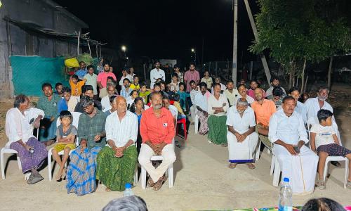 నమిత న్యూస్ - Andhra Pradesh / SPSNellore : ఆత్మకూరు - ఏప్రిల్ 22 : నెల్లూరు జిల్లా ఎస్పీ అజిత వేజెండ్ల గారి ఆదేశాలతో ఆత్మకూరు డీఎస్పీ కే. వేణుగోపాల్ గారి పర్యవేక్షణలో వారి సూచనలతో గ్రామీణ ప్రాంతాలలో ప్రజలకు నేరాల పట్ల అవగాహన కల్పించే కార్యక్రమంలో భాగంగా అనంతసాగరం మండలం యాకర్లపాడు గ్రామంలో పల్లెనిద్ర నిర్వహించిన ఆత్మకూరు సిఐ గంగాధర్.. వీరితోపాటు అనంతసాగరం, సోమశిల ఎస్సైలు సూర్య ప్రకాష్ రెడ్డి, అనూష లు పాల్గొన్నారు...పల్లె నిద్ర కార్యక్రమంలో భాగంగా అనంతసాగరం మండలం యాకర్లపాడు గ్రామంలో సీఐ గంగాధర్ గ్రామస్తులతో సమావేశం ఏర్పాటు చేసి వేసవి కాలంలో గ్రామాలలో జరిగే దొంగతనాలు అపరిచితుల సంచారం పై దృష్టి సారించాలని సైబర్ నేరాలపై అవగాహన కలిగి క్రికెట్ బెట్టింగ్, కోడిపందాల, పేకాట వంటి వాటి జోలికి వెళ్ళవద్దని సూచించారు.. గ్రామంలో అపరిచితుల సంచారం పై సమాచారం ఇవ్వాలని చిన్న చిన్న విషయాలలో గ్రామంలో గొడవలు పెట్టుకుని వివాదాలు చేసుకోవద్దని సూచించారు.. అలాగే యాకర్లపాడు హైవే వద్ద నాలుగు రోడ్లు కలిసి జంక్షన్ లో దాతల సహకారంతో టవర్ లైటింగ్ ఏర్పాటు చేశారు.. గతంలో ఈ ప్రాంతంలో చీకటిగా ఉండి ప్రమాదాలు జరుగుతూ ఉండడంతో సీఐ గంగాధర్ ప్రత్యేక శ్రద్ధ వహించి గ్రామస్తుల సహకారంతో లైటింగ్ ఏర్పాటు చేశారు.. ఈ కార్యక్రమంలో పోలీస్ సిబ్బందితోపాటు స్థానిక నాయకులు గ్రామస్తులు పాల్గొన్నారు