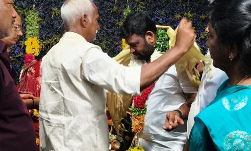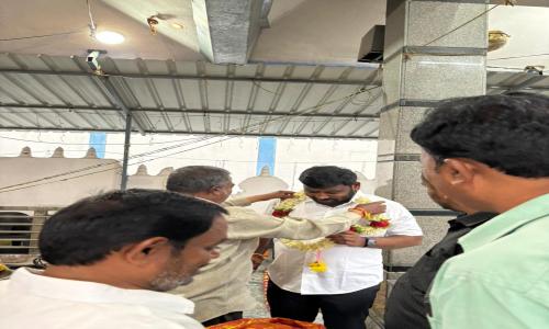నమిత న్యూస్ - Andhra Pradesh / Annamayya : మదనపల్లి - ఏప్రిల్ 29 : అన్నమయ్య జిల్లా మదనపల్లి పట్టణంలోని నీరుగట్టు వారి పల్లి నందు వెలసియున్న శ్రీ అయ్యప్ప స్వామి దేవస్థానం నందు నూతనంగా ఏర్పాటు చేసిన "ద్వజస్తంభ ప్రతిష్ట" కార్యక్రమం లో పాల్గొన్న తెలుగు యువత రాష్ట్ర అధ్యక్షులు శ్రీరామ్ చినబాబు. చినబాబు ను సాధారంగా ఆహ్వానించిన ఆలయకమిటీ సభ్యులు, స్వామి వారిని దర్శించుకొన్న శ్రీరామ్ చినబాబు వేదంపండితుల ఆశీర్వాదం పొందారు. ఈ సందర్బంగా పాలకమండలి సభ్యులు ఘనంగా సన్మానించారు. ఈ సందర్బంగా శ్రీరాం చినబాబు మాట్లాడుతూ ఆలయ అభివృద్ధికి తనవంతు సహకారం అందిస్తానని తెలియచేసారు. ఈ కార్యక్రమంలో స్థానిక తెలుగుదేశం నాయకులు, కార్యకర్తలు మరియు ప్రజలు పాల్గొన్నారు